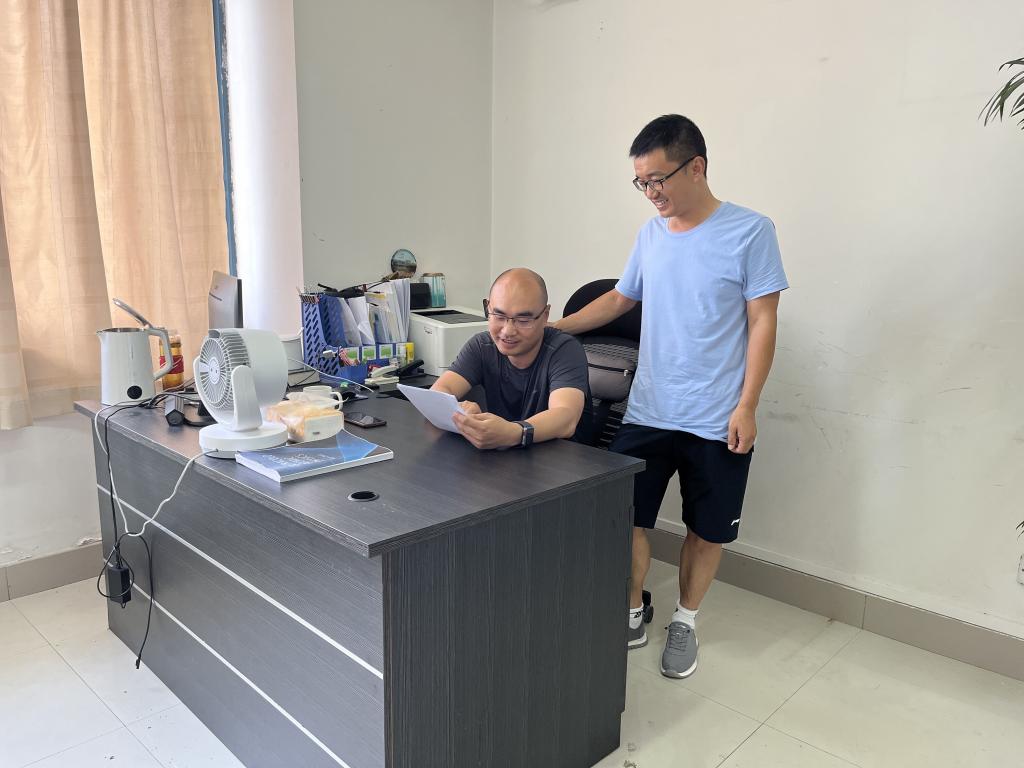 图一:文林老师与胡爱元老师在办公室探讨问