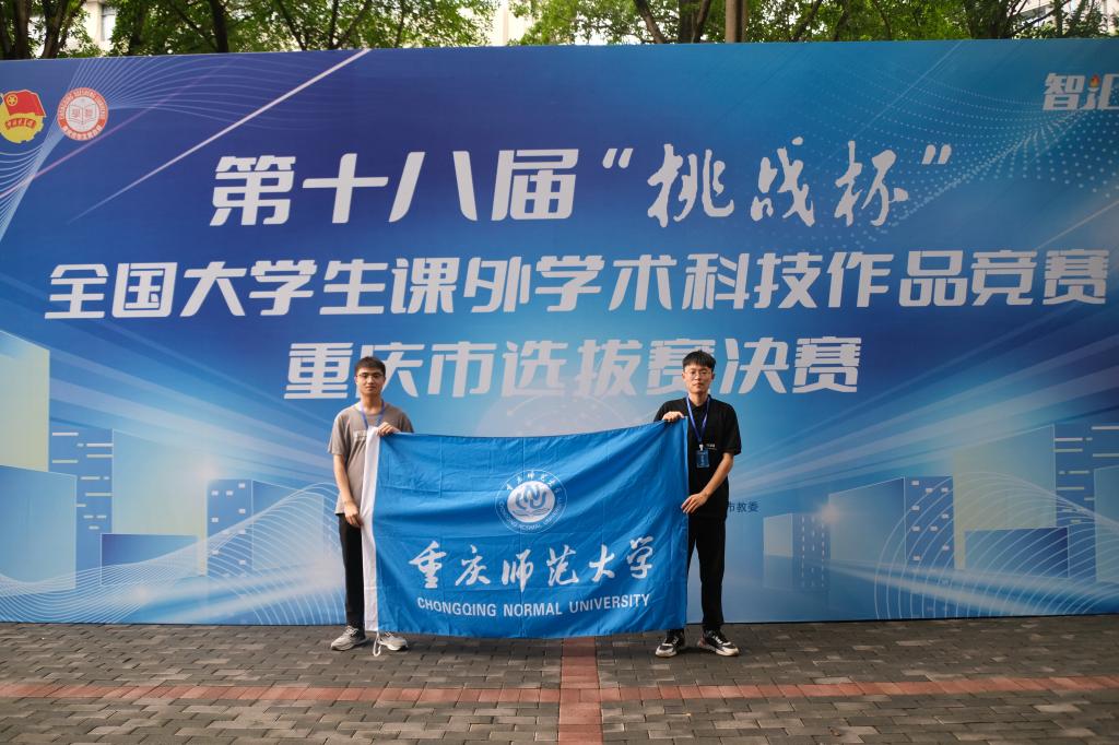 图为唐七鑫(左一)和江事灿(右一)参加重庆市挑战杯全国大学生