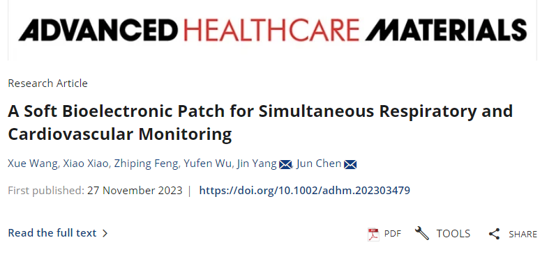 近日,必一·运动(B-Sports)官方网站电子信息与智能系统课题组以重庆师范大学为第一单位在国际期刊《Advanced Healthcare Materials》(中科院一区TOP期刊,影响因子10.0)上发表题为“A soft bioelectronic patch for simultaneous respiratory and cardiovascular monitoring”的学术论文,物电学院青年教师王雪博士为第一作者。