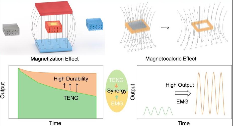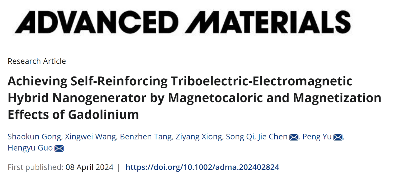 近日,必一·运动(B-Sports)官方网站凝聚态物质科学创新团队以“Achieving Self-Reinforcing Triboelectric-Electromagnetic Hybrid Nanogenerator by Magnetocaloric and Magnetization Effects of Gadolinium”为题在国际顶级期刊《Advanced Materials》(影响因子29.4)上发表最新研究成果,重庆师范大学为第一署名单位,本科生龚少坤与唐本镇博士为共同第一作者,陈杰副教授和余鹏教授为共同通讯作者,清华大学和重庆大学为合作单位。