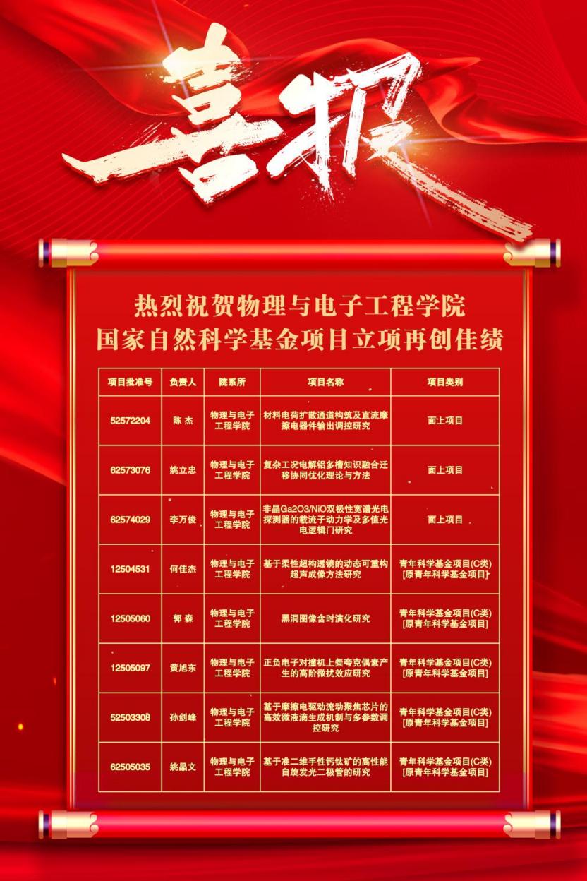 喜报:必一·运动(B-Sports)官方网站国家自然科学基金项目立项再传捷报,获批数量连续三年位居全校第一!