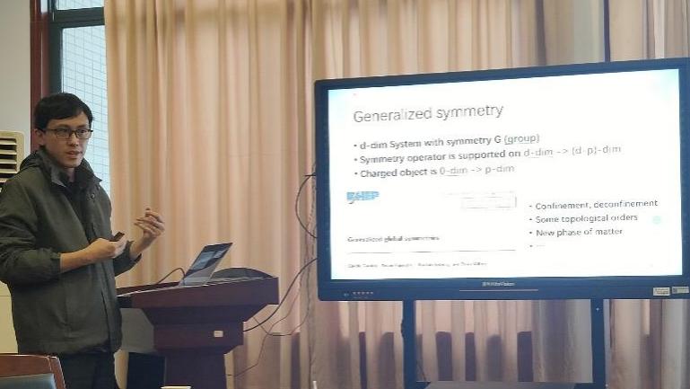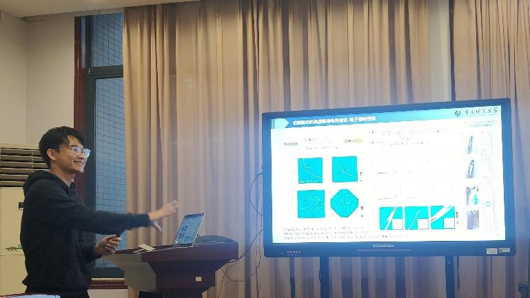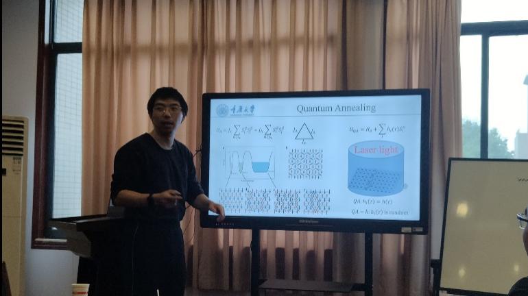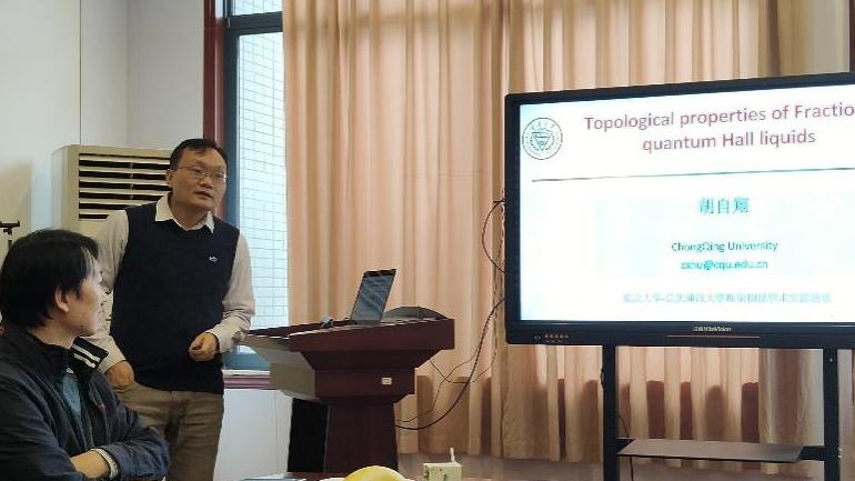 重庆大学胡自翔教授在报告中介绍了量子霍尔效应的发展历史和研究现状,系统总结了其课题组在该领域所取得的一系列研究成果,并分享了其在分数量子霍尔效应的拓扑性质研究方面取得的最新研究进展;重庆大学张学锋教授在报告中介绍了最近在针对复杂系统组合优化中拓扑类导致的各态无法历经问题所开发的新一类量子退火计算方法;重庆大学“弘深青年教师”熊梓健博士介绍了几何阻挫自旋模型的低能有效理论以及广义对称性,并展示了他在kagome晶格价键固体相的最新研究成果;重庆师范大学文林教授介绍了自旋张量-动量耦合玻色-爱因斯坦凝聚体中的亮孤子动力学性质,深入阐述了自旋张量-动量耦合对亮孤子的低能激发和运动特性等性质的调控机理,并介绍了其近期在玻色-费米混合超流量子气体中所取得的最新研究进展;重庆师范大学牟映坪博士详细回顾了高温超导的发展里程,分享了他在高温超导领域和发展量子蒙托卡罗方法探索Fermi-Hubbard模型中新奇量子现象的研究成果。