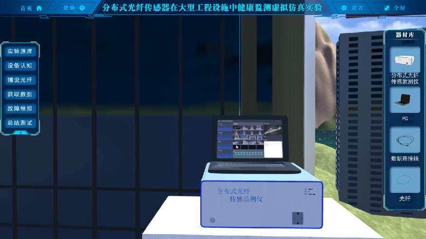 实验项目名称:分布式光纤传感器在大型工程设施中的健康监测虚拟仿真系统